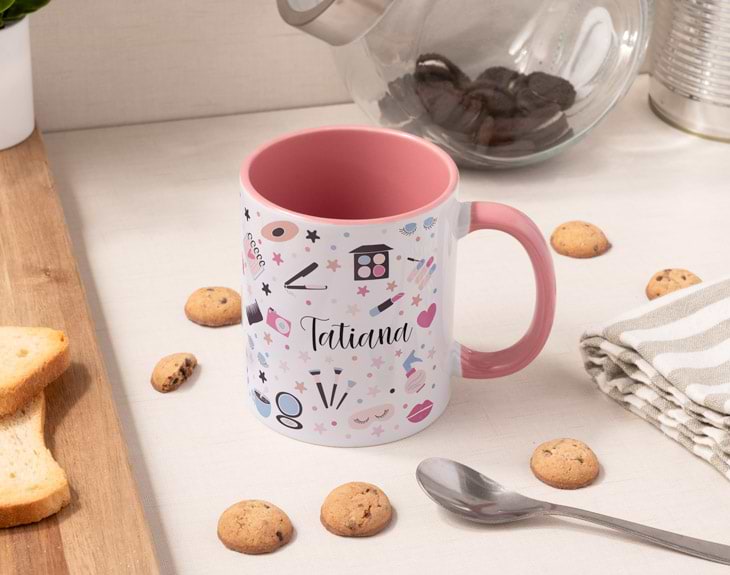 Si conoces a esa persona que siempre lleva unos make up increíbles, sin duda, esta es la mejor forma para demostrarle tu admiración. Se trata de nuestra taza “Make up” es ideal para regalarlo por un amigo invisible, un cumpleaños o para alguna ocasión especial. ¡El regalo perfecto! Está hecha pensada expresamente para esas personas que adoran maquillarse y todo lo que tiene que ver con el maquillaje. Porque tiene un estampado de lo más original, con un montón de productos de maquillaje. Gracias a esta taza personalizada conseguirás sacarle una sonrisa cada mañana. Lo mejor es que es personalizable , puedes escribir el nombre que tú quieras. Personalizar esta taza es súper sencillo. El primer paso a seguir consiste en añadir el producto al carrito y entrar al área de personalización. Una vez ahí, escribes el nombre de esa persona tan especial y nosotros nos encargamos de todo lo demás. Pronto estará perfecta y lista para regalar. Al comprar este diseño podrás elegir el tipo de taza que quieres entre nuestras seis opciones disponibles en el desplegable: cerámica, mágica, plástico, con el interior en color, con cuchara o con asa en forma de corazón. En el lado derecho encontrarás la guía de tazas con las características de cada una de ellas. ¡Escoge el estilo y la cantidad de tazas que quieras!