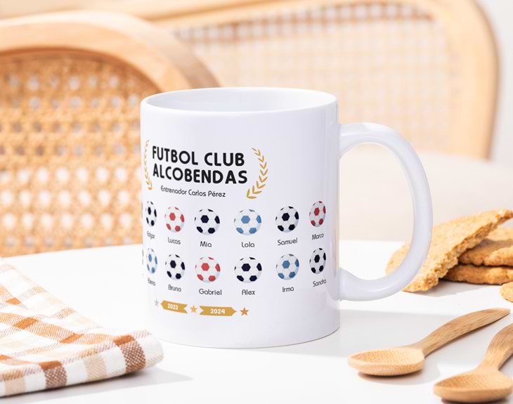 Si pertenecer a este equipo es una de las mejores cosas que os ha pasado, esta taza personalizada con vuestros nombres y un montón de balones representando a cada jugador, está hecha para vosotros. Ya seáis un equipo de fútbol, baloncesto, balonmano, rugby o voley, podréis crear vuestro propio diseño totalmente personalizado. Para ello, solo tenéis que escoger el tipo de pelota, así como el color, y añadir el texto que queráis. ¿Esta temporada habéis crecido muchísimo en todos los aspectos? Entonces nos parece la mejor manera de guardar un bonito recuerdo de estos meses. Y es que, no es fácil crear un equipo que encaje tan bien tanto dentro como fuera del campo. Esfuerzo, responsabilidad, humildad y, lo más importante, compañerismo. También es una opción fantástica como regalo para entrenadores, y es que, así podrá acordarse cada día de sus jugadores favoritos. Si habéis tenido la suerte de tener como referente a la mejor o al mejor entrenador del mundo, esta taza tiene su nombre. ¡Se lo merece por todos esos valores que os ha inculcado!