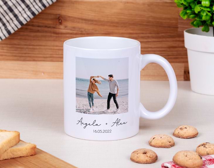 Esta taza personalizada con diseño "Polaroid minimalista" es el detalle perfecto para sorprender a tu pareja en cualquier ocasión especial. Ya sea vuestro aniversario, el día de San Valentín o cualquier otra fecha importante, esta taza será la excusa perfecta para regalar algo original y lleno de amor. Ideal para empezar el día con una sonrisa, se convertirá en la taza favorita para acompañar el café o té de cada mañana. Además, lo mejor de esta taza es que es personalizable. ¡Podrás añadir vuestra foto favorita y escribir el texto que desees debajo de ella! Un diseño minimalista y elegante que encajará a la perfección en vuestro hogar. Personalizar esta taza es muy sencillo. El primer paso a seguir consiste en añadir el producto al carrito y entrar al área de personalización. Una vez ahí, ya puedes añadir desde tu dispositivo vuestra foto favorita y añadir el texto que quieras. Pronto estará perfecta y lista para regalar. ¡Será un original regalo para San Valentín! Al comprar este diseño podrás elegir el tipo de taza que quieres entre nuestras seis opciones disponibles en el desplegable: cerámica, mágica, plástico, con el interior en color, con cuchara o con asa en forma de corazón. En el lado derecho encontrarás la guía de tazas con las características de cada una de ellas. ¡Escoge el estilo y la cantidad de tazas que quieras!