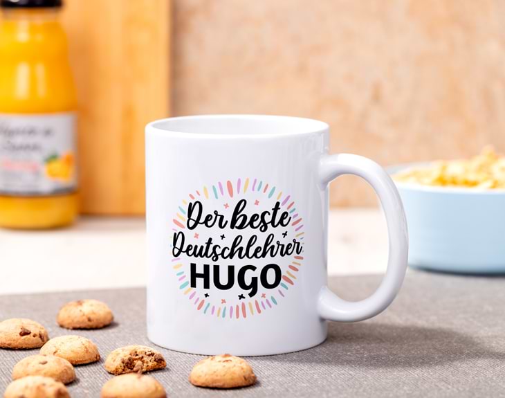 ¿Quieres sorprender a tu profesor o profesora de alemán? Si estás buscando un detalle original, tenemos algo que te encantará. Para esa profe que no puede vivir sin su café y que hace que hasta los verbos más difíciles parezcan sencillos, esta taza personalizada con su nombre es perfecta. Gracias a su diseño pensado especialmente para profes de alemán, cada sorbo será un momento para recordar lo mucho que valoras su dedicación y paciencia. Un regalo original y muy personal. Además, es personalizable: elige el modelo que más le guste y añade su nombre para que sea único. Haz que este fin de curso sea inolvidable con un regalo original para profes que seguro le robará una sonrisa y le acompañará en muchas jornadas de trabajo. Y como cada profe es diferente, también puedes elegir el tipo de taza que mejor se adapte a su estilo: cerámica clásica, mágica, de plástico, con el interior en color, con cuchara o incluso con asa en forma de corazón. En el lado derecho encontrarás una guía con las características de cada modelo. ¡Solo tienes que elegir la que más te guste y la cantidad que necesitas! Traducción: la mejor/el mejor profe de alemán.