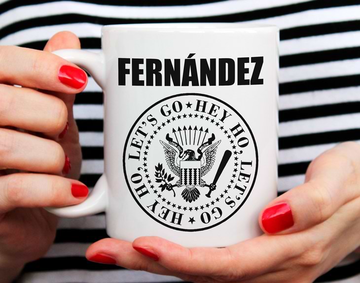 ¿Quieres sentirte parte de uno de los grupos de música más famosos de la historia? Desayuna cada mañana como si fueras uno más de los Ramones con esta taza original personalizada. Dinos tu nombre o tu apellido y lo pondremos al lado del icónico símbolo del águila punk. ¡Para que empieces cada día con la energía del buen rock! Los Ramones ya es historia de la música, por lo que encontrarás a tu alrededor a gente de todas las edades que le guste este mítico grupo. Así, siempre acertarás: esta taza personalizada con su símbolo es el regalo más original que puedes hacerles para que se vean como uno más del grupo. De hecho, puedes formar ahora mismo tu propia banda de Ramones y encargar varias tazas personalizadas cada una con el nombre, apellido o mote de tus amigos, primos... Cuantas más encargues, ¡más barato te saldrá! Regala esta taza a tu grupo de amigos y, aunque estéis separados, os sentiréis más unidos que nunca cada vez que desayunéis, merendéis o cuando estéis en el trabajo. Y cuando estéis juntos, ¡podéis tomaros algo mientras escucháis de fondo la mítica canción "Hey ho, let's go"!