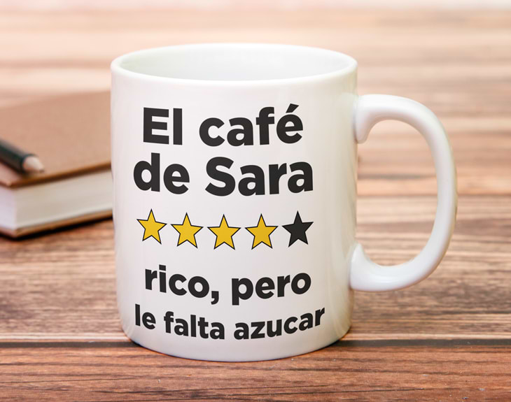 ¿Te acabas de mudar a vivir con tu pareja? Segurísimo que ahora estáis como locos buscando cómo decorar la casa y cuidando todos y cada uno de los detalles. Si los dos sois unos amantes del café, pero es a tu pareja a quien siempre le queda más rico, esta taza es un regalo muy original. Es una forma ideal de agradecerle lo mucho que te gusta el café y lo bien que lo hace. ¡Conseguirás sacarle una gran sonrisa desde primera hora de la mañana! El diseño que tiene, no tiene desperdicio alguno. Tiene estampadas una review de cuatro estrellas y lo mejor de todo, es que es personalizable, podrás escribir la reseña del café con el mensaje que tú quieras. ¡Será súper especial! Al comprar esta taza, podrás elegir el tipo de taza que quieres entre nuestras opciones disponibles en el desplegable: cerámica, mágica, con el interior en color, con cuchara o con un asa en forma de corazón. En el lado derecho encontrarás la guía de tazas con las características de cada una de ellas. ¡Escoge el estilo y la cantidad de tazas que quieras! Si finalmente te decides a hacer este regalo tan original, solo queda lo más sencillo, la parte personalizable. El primer paso para ello, es añadir el producto al carrito y entrar al área de personalización. Una vez ahí, ya puedes escribir la review con el mensaje que tú quieras. Y pronto quedará prefecta y lista para regalar.