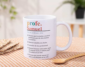 ¿Tienes el profe o la profe más divertida, comprensiva y paciente del mundo?¡Entonces se merece un regalo que le saque muchísimas sonrisas! No hay mejor forma de empezar el día que tomando el café en una taza personalizada así de emotiva. Los profesores nos ayudan a crecer, a madurar a pasos agigantados y a ser mejores personas. Y es que...¿Qué haríamos sin ellos? Su tu profe también es uno de los pilares fundamentales de tu educación y gracias a sus enseñanzas estáis dispuestos a comeros el mundo...¡Es el momento de agradecérselo!¡Seguro que le encanta! Al comprar este diseño podrás elegir el tipo de taza que quieres entre nuestras seis opciones disponibles en el desplegable: cerámica, mágica, plástico, con el interior en color, con cuchara o con asa en forma de corazón. En el lado derecho encontrarás la guía de tazas con las características de cada una de ellas. ¡Escoge el estilo y la cantidad de tazas que quieras!