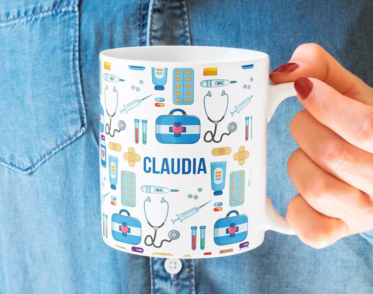 El desayuno es una de las comidas más importantes del día. Por eso, si tenemos a algún enfermero en nuestra vida, al igual que ellos se encargan e cuidarnos cuando estamos enfermos, nosotros también tenemos que cuidarles a ellos. Nuestra taza con diseño de enfermeros es un detalle ideal que tome su bebida favorita a la hora del desayuno. ¡Será el regalo perfecto para enfermeros! Si tú conoces a ese estudiante de enfermería que está muy estresado con exámenes y trabajos, regálale esta taza personalizada para alegrarle sus mañanas. ¡Conseguirás que sonría desde primera hora de la mañana! Seguro que le anima a hacer un último esfuerzo estudiando. Lo mejor es el diseño tan original de enfermeros, ¡es chulísimo! Personalizar esta taza profesiones “Enfermero” es súper fácil. El primer paso a seguir consiste en añadir el producto al carrito y entrar al área de personalización. Una vez ahí, ya puedes escribir el nombre que quieras o un bonito mensaje para esa persona tan especial. Pronto quedará perfecta y lista para regalar. ¡Será un regalo muy especial! Al comprar este diseño podrás elegir el tipo de taza que quieres entre nuestras seis opciones disponibles en el desplegable: cerámica, mágica, plástico, con el interior en color, con cuchara o con asa en forma de corazón. En el lado derecho encontrarás la guía de tazas con las características de cada una de ellas. ¡Escoge el estilo y la cantidad de tazas que quieras!
