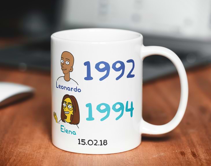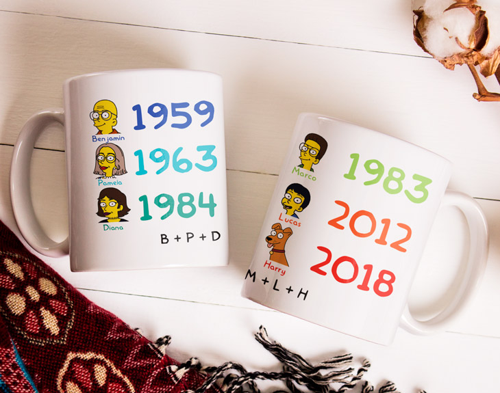 Uno de los planes más guays que hay para hacer en familia es hacer un maratón de una series que os encante a todos. Si en tu casa, sois súper fans de la series de Los Simpson, está claro que tenemos algo que no os puede faltar en vuestra cocina. Se trata de nuestra taza personalizada "Años" con diseño Familia Simpson. ¡Os encantará! Es ideal para que esa persona pueda disfrutar de su bebida favorita en el desayuno. Esta taza está diseñada expresamente para los fans de esta serie. ¡Es personalizable! Podrás representar a cada miembro de la familia en forma de Simpson. ¡Será muy divertido! Gracias a esta taza, conseguirás que sonrían desde la hora del desayuno. Sin duda, esta taza de puede convertir en un regalo original para un cumpleaños, una amigo invisible, para el Día del Padre o el de la Madre. Por último, para personalizar esta taza, el primer paso a seguir consiste en añadir el producto al carrito y entrar al área de personalización. Una vez ahí, ya puedes crear a estos avatares Simpson y poner el año de nacimiento de tus familiares. Pronto estará perfecto y listo para regalar. ¡Quedará genial y será la mejor taza del mundo! Al comprar este diseño podrás elegir el tipo de taza que quieres entre nuestras seis opciones disponibles en el desplegable: cerámica, mágica, plástico, con el interior en color, con cuchara o con asa en forma de corazón. En el lado derecho encontrarás la guía de tazas con las características de cada una de ellas. ¡Escoge el estilo y la cantidad de tazas que quieras!
