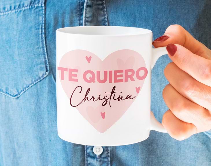 ¿Quieres recordarle a esa personita tan especial lo mucho que la quieres? Una taza personalizada es el regalo ideal y perfecto para regalar en cualquier momento. Cuando se esté tomando su desayuno favorito se acordara de lo mucho que la quieres y le sacarás una sonrisa seguro. Y es que no hace falta que sea San Valentín o cumpleaños para tener un detalle con tu humano favorito del mundo. Nuestras tazas son de excelente calidad y esta está disponible en 6 colores distintos: rosa, morado, azul, gris, naranja y amarillo, ¿cuál elegirás tú? También podrás personalizarlo con el nombre que tu elijas y ver una pequeña vista previa antes de realizar la compra. Si quieres sorprender e ilusionar este regalo original es una buenísima idea que hará las delicias de cualquier persona que lo reciba y lo conservará con cariño el resto de su vida, haciendo que se acuerde de ti siempre que use esta taza.