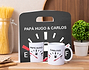 • Tazas para parejas personalizadas (33 cl). • Tarjeta recordatoria.