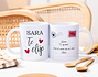 • Tazas para parejas personalizadas (33 cl). • Tarjeta recordatoria.