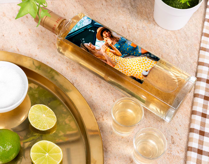 Esta botella de tequila dorado con la etiqueta personalizada es perfecta para hacer un regalo con todo el sabor de México. Una botella preciosa, una bebida de excelente calidad y la etiqueta personalizada como tú quieras son los argumentos de este producto tan original. La base de este regalo es una botella de Jalisco Premium Gold, un delicioso tequila dorado procedente de una selección de los mejores agaves de Jalisco. Se destila con todo el mimo y posteriormente se reposa en barricas de roble.