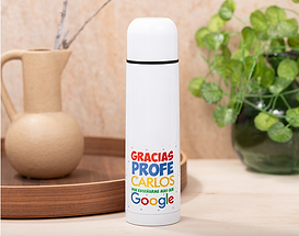 • Termo con vasito de aluminio personalizado. • Tarjeta recordatoria.