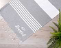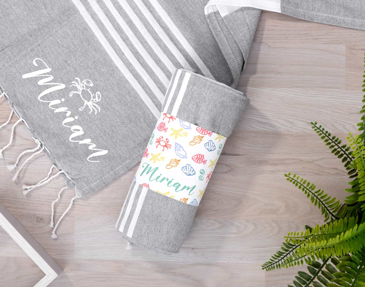 ¿Eres más de piscina o playa? No importa si eres de agua dulce o salada, lo que importa es que este verano vas a tener la toalla personalizada más guay del mundo. Toca jubilar la tuya y sustituirla por esta estilo pareo con la que triunfarás en cualquier plan acuático este verano. Esta original toalla no podrá faltar en tu maleta este verano, porque es todo lo que necesitas para tumbarte al sol y recarte después de cada baño. Hecha 100% de algodón, de color gris con rayas blancas y unos preciosos flecos, sin duda, esta toalla es el accesorio estrella del verano. Pero antes de poder disfrutar de ella, tendrás que personalizarla con un diseño de lo más marino. Entra en nuestro diseñador y completa con el nombre que quieras los dos diseños que te dejamos, uno para la toalla y otra para un faldón que la envuelve. ¡Será el regalo perfecto para verano! Medidas: 170 x 90 cm. Material: 100% algodón.