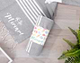 • Toalla gris flecos personalizada. • Tarjeta Recordatoria.