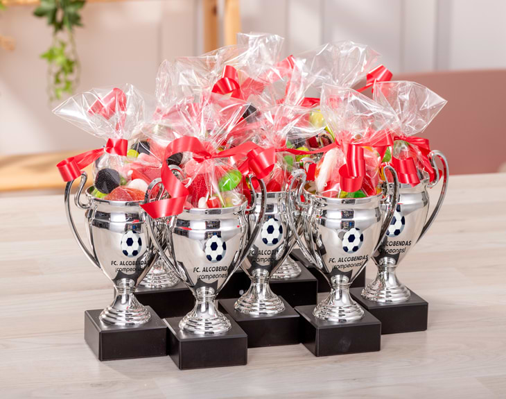 • Trofeo Champions personalizado. • Bolsita de chuches. • Tarjeta Recordatoria