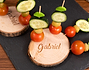 Nuestros tronquitos grabados son el regalo más romántico que puedes hacer. La mejor manera de conquistar a alguien es con el estómago, por lo que prepara unos pinchos excelentes y llenos de amor, y seguro que triunfas. Además, en cuanto la otra persona coja un pincho, verá que el tronquito tiene un mensaje para ella. ¡No hay regalo más romántico! Cada tronco tiene hasta 6 agujeros para poner los pinchos. Escribe el texto que quieras y te grabaremos los dos tronquitos para dar la sorpresa más bonita del mundo. Después de triunfar, a disfrutar del buen aperitivo. Diámetro: 9 centímetros aproximadamente. Grosor: 1 centímetro aproximadamente.