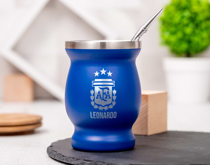 ¡El regalo perfecto para los fanáticos de la Selección de Fútbol Argentina está aquí! Este vaso mate personalizado con el nombre que quieras grabado. Además, podrás elegir entre varios colores de mate y así se adapte a los gustos de la persona que lo reciba. Este mate personalizado será un éxito asegurado. ¿A qué argentino no le apetecería disfrutar de un poco de mate en este vaso de lo más especial? Su sabor es completamente adictivo, lo que le ha convertido en una de las infusiones más populares a nivel mundial. Este regalo está pensado para todos los fanáticos del fútbol que ahora podrán disfrutar de su bebida favorita de una forma única gracias a este mate con nombre grabado, hecho de acero inoxidable. Este vaso para mate tiene una altura de 11 centímetros, mientras que la base cuenta con un diámetro de 6 centímetros. Y toca personalizar este original regalo añadiendo tu nombre o el de quien tú quieras, para que aparezca debajo del escudo de la Selección Argentina. Una vez hecho esto, nosotros nos encargamos de grabarlo en el vaso... ¡y a disfrutarlo! Además, el vaso incluye bombilla y cepillo para limpiar. ¡Tendrás el pack completo para disfrutar de un sabroso mate! Altura: 11 centímetros. Base: 6 centímetros. Filo: 7,5 centímetros. Material: acero inoxidable.