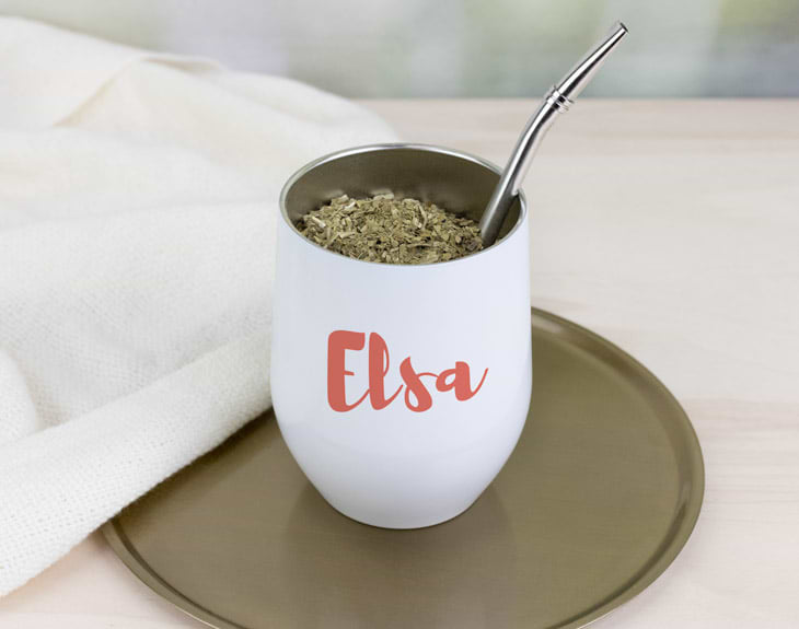 Si tienes cerca a algún argentino/a o uruguayo/a seguro que le ha escuchado decir más de una vez que no pueden vivir sin su mate. Por eso, te traemos el regalo perfecto, un vaso de mate personalizado con su nombre o el texto que quieras a todo color. ¡Seguro que le hace muchísima ilusión! Fabricado en acero inoxidable y con doble pared para conservar la temperatura, cuenta con una altura de 12 cm y una capacidad de 360ml, perfecta para que pueda disfrutar de su bebida favorita. Y es que, si es de esas personas que llevan su mate allá donde vayan, este detallazo le encantará. ¿Sabías que el mate es una de las bebidas más antiguas? Está hecha con hojas de yerba mate y cuenta con un sabor amargo muy característico. Además, debido a la cafeína que contiene, es ideal para afrontar con mucha energía el día, y no solo eso, también tiene poderes antioxidantes, diuréticos y digestivos. ¡Es una super infusión! Además, el vaso puede llegar a incluir bombilla. Solo tendrás que escoger la opción que incluye la bombilla. ¡Tendrás el pack completo para disfrutar de un sabroso mate! Altura: 12 centímetros. Base: 5,5 centímetros. Borde: 8 centímetros. Capacidad: 360 mililitros. Material: acero inoxidable. Color: blanco. Medidas de la tapa: 7,5 x 8 centímetros. Incluye doble pared. Importante: incluye tapa transparente con boquilla.