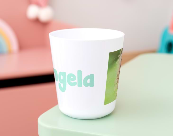 El vasito de plástico personalizado perfecto para pequeños y mayores. Se trata de un divertidísimo vaso en el que puedes añadir vuestra foto favorita, además podréis crear vuestro propio diseño con la ayuda de nuestro diseñador añadiendo stickers, fondos y textos. ¡Toca dejar volar vuestra imaginación! Si vuestros hijos tienen que llevar un vasito para el cole, o poco a poco se están haciendo mayores y están dejando de lado el biberón, este regalo original les encantará. Seguro que están deseando que llegue la hora de la merienda para poder estrenar su nuevo vaso. Además, tiene un tamaño perfecto para que pueda guardarlo en su mochila y llevarlo a todos lados. Hidratarse nunca había sido tan divertido como hasta ahora. ¡Le encantará! Capacidad: 200 ml. Altura del vaso: 8,2 cm. Diámetro: 7,5 cm. Material: plástico. Importante: este vaso de plástico se puede meter en el lavavajillas. Importante: el vaso está hecho de plástico libre de BPA.