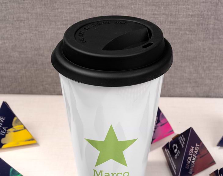 • Vaso de cerámica personalizado. • Tarjeta recordatoria.