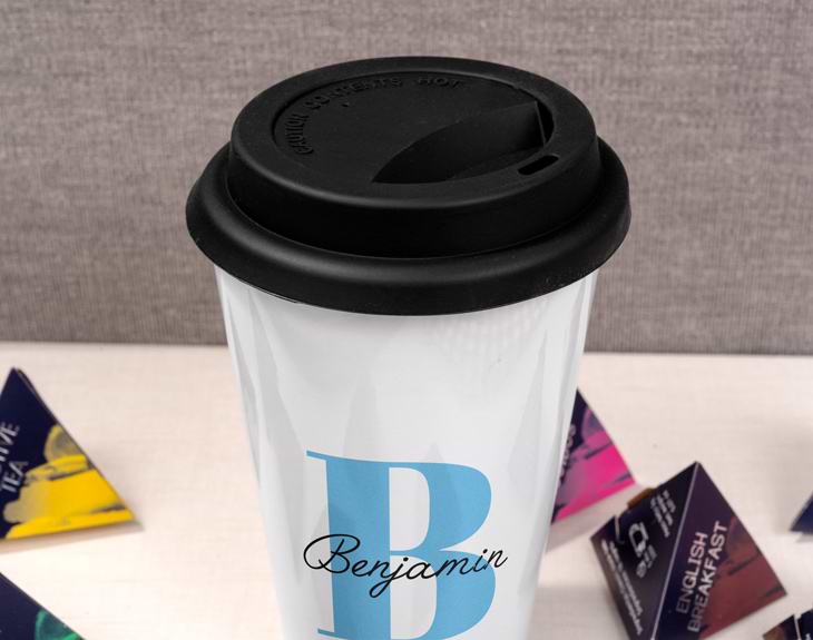 ¿Qué persona no ha tenido que salir corriendo de casa porque no llega al trabajo? A todos se nos han pegado las sábanas en algún momento de nuestra vida, por lo que este vaso de cerámica personalizado es el producto perfecto para esas personas que no pueden empezar el día sin un café independientemente de la situación en la que estén. ¡Incluso de camino al trabajo! Un vaso con diseño de inicial que podrás llevar a cualquier parte, ya sea para tomarlo en el coche de camino a la oficina o para disfrutar de él en el transporte público. Además incluye una funda aislante de silicona a juego con la tapa para que no se derrame ni una sola gota de su café o té al beber. Además, este regalo original podrá ir personalizado con la inicial en color pastel que quieras. Solo tendrás que escoger el color de letra que más te guste en el interior del diseñador, una vez añadas el producto al carrito. Este aparecerá en la cara del vaso de cerámica. Una vez en la plantilla solo tendrás que escribir la inicial que quieras y el nombre sobre la letra, clicando sobre los cuadros de texto. Medidas: - Altura: 13,5 cm. - Ancho: 9 cm diámetro en la parte superior y 5,5 cm de diámetro en la base. - Capacidad: 400 ml.