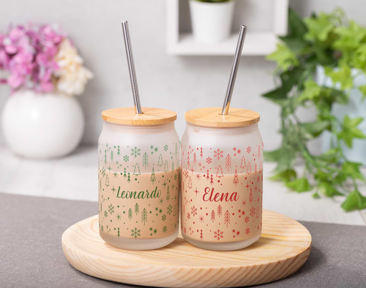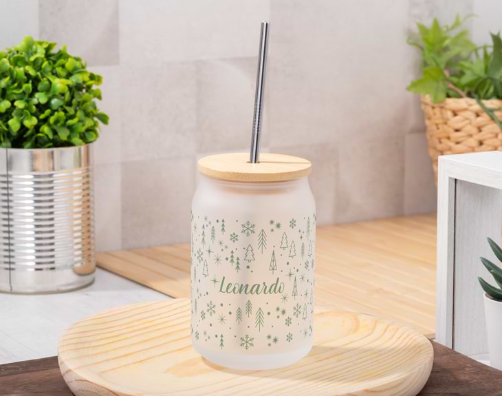 ¿Cuál es tu época favorita del año? Estamos todos de acuerdo en que las Navidades son las mejores fechas. Nos reunimos con nuestros familiares y amigos y comemos un montón de turrón. Lo único malo de estas fechas son las bajas temperaturas del invierno, pero para amenizar el frío... ¡Nuestro vaso con pajita personalizado con diseño "Abetos" es perfecto para disfrutar de bebidas bien calentitas! Por otro lado, si quieres sorprender a esa persona tan especial, este vaso se convertirá en el regalo navideño perfecto. Lo más especial que tiene es que es personalizable, podrás escribir el nombre de esa persona. Además, está fabricado en cristal y su pajita es de acero inoxidable, por lo que podrás reutilizarlo tantas veces como quieras. Personalizar este vaso con pajita es muy sencillo. El primer paso a seguir consiste en añadir el producto al carrito y entrar al área de personalización. Una vez ahí, ya puedes escribir el nombre que tú quieras. Pronto estará perfecto y listo para regalar. ¡Será un original regalo para Navidad! Características: - Medidas: 12,5 cm x 7,7 cm - Capacidad: 400 ml - Material: cristal mate. - Pajita: acero inoxidable.