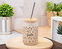 • Vaso con tapa y pajita personalizado. • Tarjeta recordatoria.