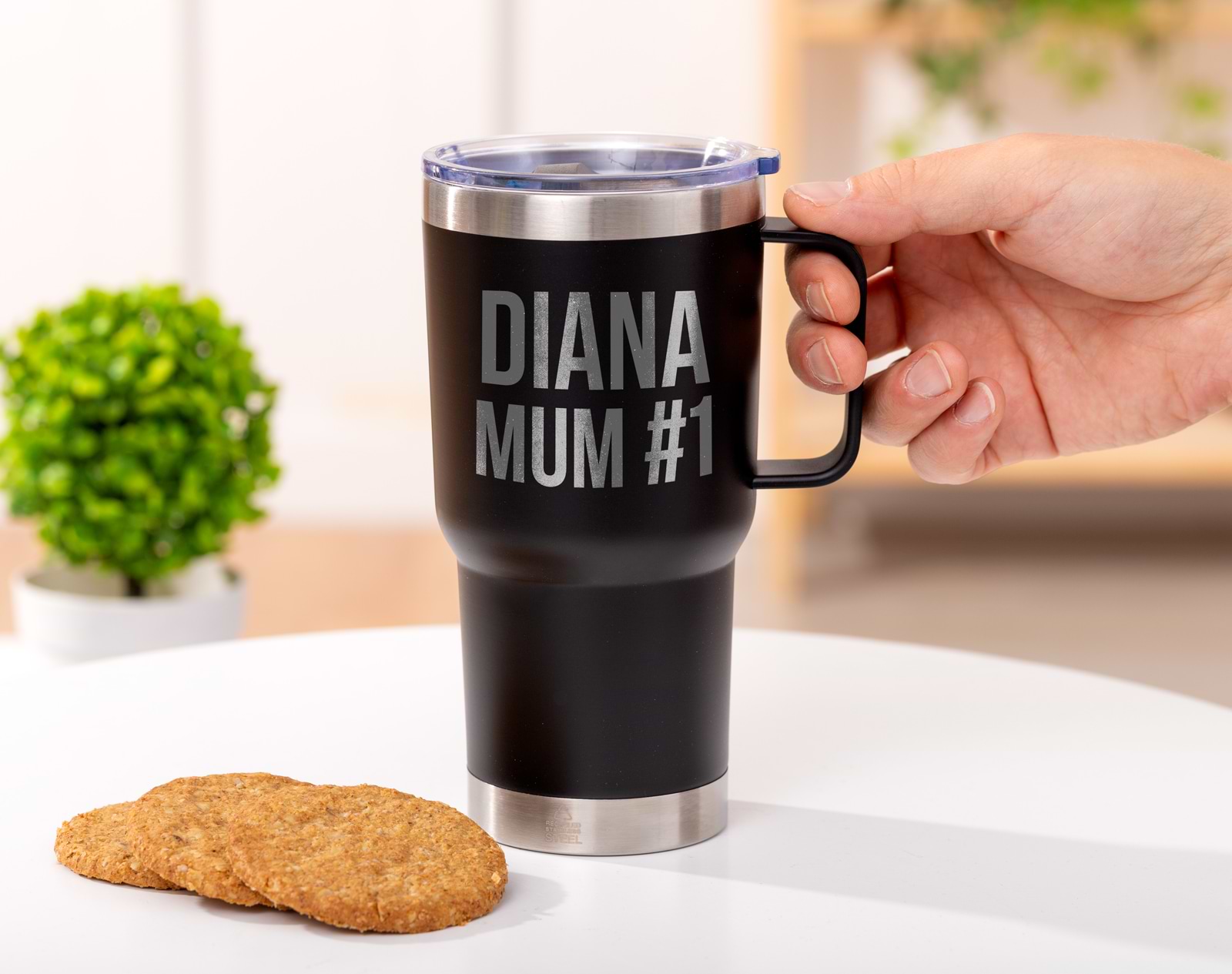 Las madres son las únicas personas en el mundo que tienen la capacidad de hacer miles de cosas al día, de estar de aquí para allá sin parar y de preocuparse siempre por su familia. Por eso, si tu madre es una persona que no para y se pasa el día fuera de casa, el mejor regalo que puedes hacerle es este vaso térmico personalizado. Es genial para que pueda llevar su bebida favorita siempre encima vaya donde vaya. ¡Es lo más! Este original termo es el regalo perfecto para sorprender a mamá en su cumpleaños, en el Día de la Madre, en Navidad... ¡Es perfecto! Y es que además de ser un detalle súper útil para el día a día, es totalmente personalizable por lo que podrás elegir desde el color del vaso hasta el nombre que quieres poner en el diseño. ¡Nosotros nos encargamos de grabarlo! Este vaso térmico es genaial porque está fabricado de acero inoxidable y cuenta con doble pared para mantener las bebidas en su interior tanto calientes como frías. Además, cuenta con una tapa para evitar que el líquido se derrame y una pequeña abertura para poder beber cómodamente. ¡Y tiene un asa para que puedas llevarlo a donde quieras! Para poder personalizar este vaso térmico solo tienes que acceder a nuestro diseñador. Después, elige el color, escribe el nombre de tu madre y ajústalo como tú quieras. Así de fácil es crear un recuerdo único y práctico para la madre número uno. ¡Se quedará sin palabras! Capacidad: 600 ml. Medida: 8,80 x 17,50 cm. Material: Acero Inoxidable, doble pared. Libre de BPA. Colores disponibles: negro y gris.