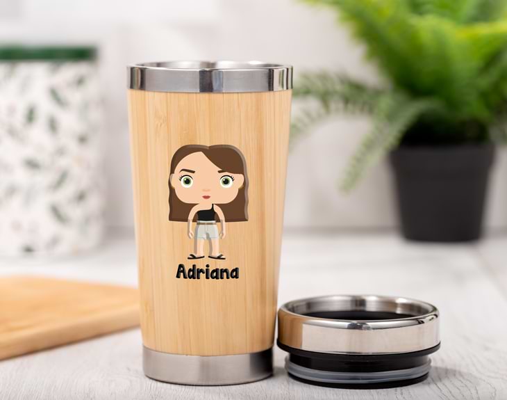 ¿Te gustaría llevar tu bebida favorita siempre contigo en un vaso con estilo y, además, verte reflejado en un personaje único? Con este vaso termo personalizado con diseño tinok puedes hacerlo realidad. Es el combo perfecto para quienes aman los detalles originales, se identifican con sus personajes favoritos y cuidan del planeta al mismo tiempo. Este vaso termo para café está fabricado con materiales reutilizables, combina bambú natural con acero inoxidable en su interior y cuenta con tapa segura antigoteo. Mantiene la temperatura durante horas, ideal para café, té o lo que prefieras. Y lo mejor: puedes personalizarlo con un personaje al estilo Funko creado por ti, eligiendo rasgos, accesorios y ropa. Podrás hacerlo como quieras y, debajo, podrás colocar el nombre. Personalizar es muy fácil: solo tienes que añadirlo al carrito, crear tu personaje Tinok, escribir el nombre y listo. Será un regalo original, divertido, útil, ecológico y absolutamente único. Medida: 17.5 cm de alto Capacidad: 500 ml. Importante: el vaso tiene un pequeño agujero en la tapa, no es un termo estanco.