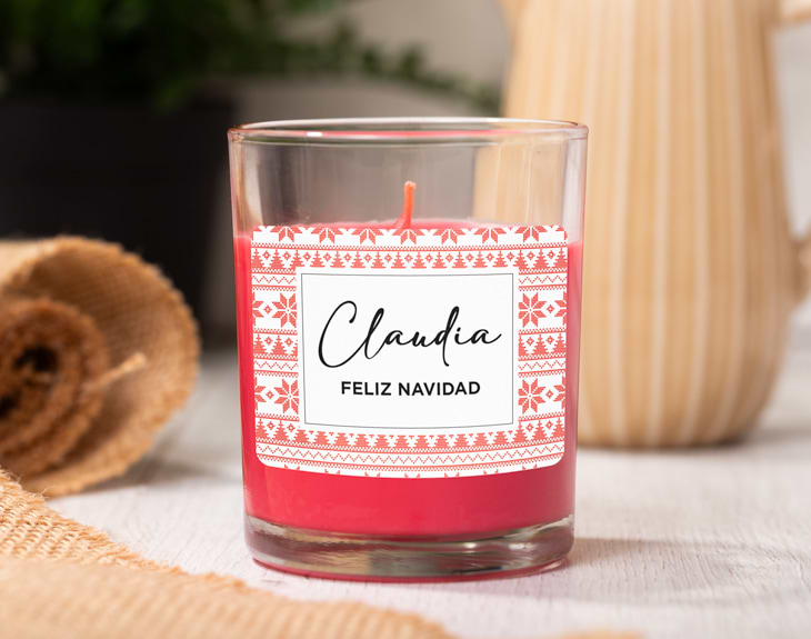 Algo típico en la decoración de una casa son las velas. Esos elementos que aportan un toque personal y, sobre todo, buen olor. Transforma el entorno en un ambiente más acogedor y amable. Si ahora que se acerca la Navidad, siempre te gusta decorar la casa de acuerdo a estas fechas tan especiales, tenemos algo que no te puede faltar. ¡Nuestra vela en vaso perfumada! Es ideal porque tiene un estampado navideño de lo más original. ¡Sin duda, llenará la sala de buen olor! Se puede elegir entre varios aromas disponibles. Además, es personalizable, podrás escribir lo que tú quieras y nosotros lo ponemos en el estampado de la vela. Personalizar esta vela “Jersey navideño” es súper sencillo. El primer paso a seguir consiste en añadir el producto al carrito y entrar al área de personalización. Una vez ahí, ya puedes escribir vuestras iniciales, nombres o lo que quieras. Pronto quedará perfecta y lista para regalar. ¡Será un regalo navideño muy especial! Medidas: -Altura: 8 cm