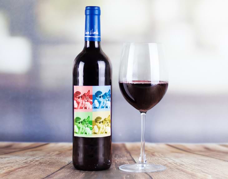 ¿Quieres regalar un rico vino pero con un toque diferente? Si quieres mantener el equilibro entre calidad y estilo, este regalo original es la mejor opción. En este vino personalizado con Certificación de Origen, ¡tú elijes la etiqueta! ¿Qué imagen crees que quedaría ideal pegada al vino? Súbela tras añadir el producto al carrito y la botella te llegará con ella impresa con un efecto chulísimo. Para que tu imagen resalte sobre la botella, aparecerá pasada por el filtro Andy Warhol. Así, lucirá cuatro veces más chula con este efecto pop-art en cuatro colores. Por ello, además de ser un regalo original, esta botella puede convertirse cuando se acabe en un bonito y novedoso recuerdo de ese momento de la imagen. ¡Podéis brindar por él mientras bebéis la botella! Para que ese momento os sepa lo más dulce y sabroso posible, hemos usado de base un vino de la Tierra de Castilla y León con Certificación de Origen. Así, está más que asegurada la calidad excepcional de este producto, envejecido en barrica de roble. De esta manera, este regalo original es además un caldo sorprendente y lleno de matices, con una botella premium que contiene un elaborado sabor.